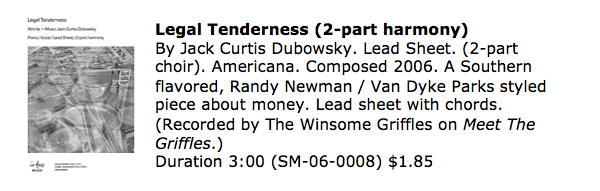 | Legal Tenderness (2-part lead sheet) | 2006 | 03:00 | Listen/View | Listen/View | |