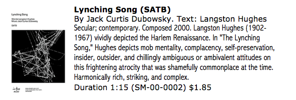 | Lynching Song (SATB) | 2000 | 01:15 | Listen/View | Listen/View | |