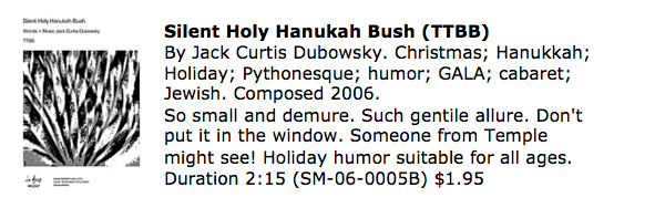 | Silent Holy Hanukah Bush (SATB) | 2006 | 02:15 | Listen/View | Listen/View | |